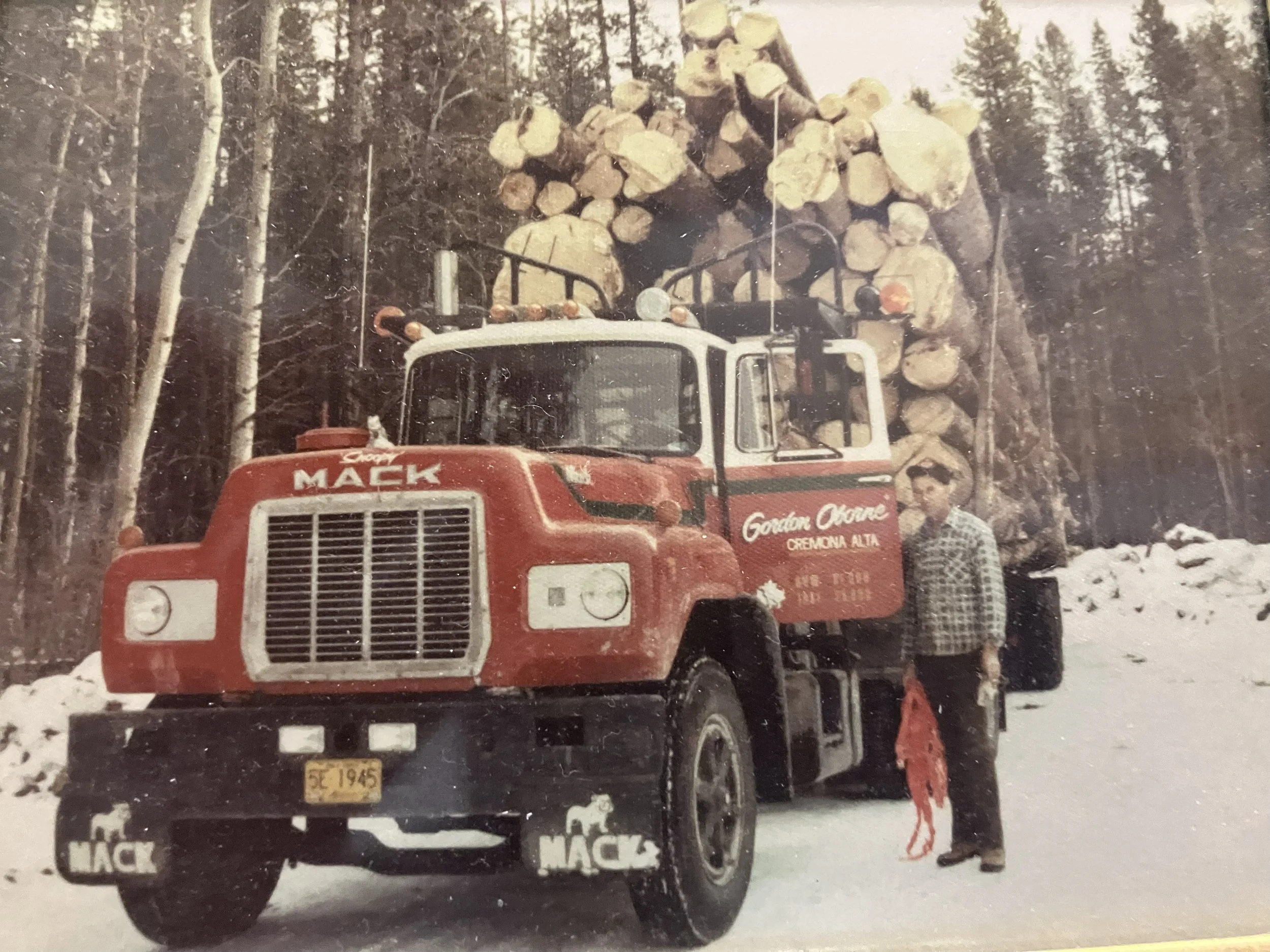 My father hauling logs for Spray Lakes Sawmill south of Canmore, AB in 1974.